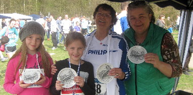 Übungsleiter Manfred Meier ließ es sich nicht nehmen, den folgenden Start der Seniorinnen und Damen anzukündigen. Sein virtuos bedientes Megaphon verscheuchte zwar Singvögel und Rotwild (kann bei Trainingsläufen tatsächlich beobachtet werden), lockte aber zahlreiche neugierige Spaziergänger an. Zwei (!!!) Seniorinnen und immerhin acht Damen wagten sich auf den 55o m langen Rundkurs. Das Seniorinnenduell entschied mit 5:30,0 Minuten Hannelore Drobisch, HEW, für sich. Ihre Konkurrentinnen hatten nicht mehr als notwendig getan und auf eine Teilnahme verzichtet. So konnte sie ihr Punktkonto optisch verbessern. Meike Möller, Philips, gab mit ihrem ungefährdeten zweiten Platz einen hervorragenden, verpflichtenden Betriebssporteinstand. Susanne Gärtner, Commerzbank, konnte nicht verhindern, auch beim fünften Saisonstart den ersten Platz zu belegen. Die zweimal 550 m lief das Naturtalent "Susi" mühelos in 4:30,6 Minuten. Sechs Sekunden später kam Christiane Röper, Texaco, ins Ziel, die auch in der Gesamtwertung mit sechs Punkten einen ungefährdeten zweiten Platz belegen konnte. Hannelore Walter, Allianz, gab leider nur eine Gastvorstellung und so wurde ihr hervorragender dritter Platz in 4:39,6 Minuten für die Waldlaufserie nicht gewertet. Stürmischen Beifall gab es für Monika Strocka, Philips, die sich mit phantastischem Endspurt in 4:44,6 den vierten Platz erkämpfte, 1,8 Sekunden vor Hanne-Lore Stragies, Tschibo. Ihr Trainingsfleiß wurde mit dem dritten Platz in der Gesamtwertung belohnt. Für zukünftige Betriebssportstarts empfahl sich auch Margret Niethmann, Philips, die sich mit 5:20,8 Minuten respektlos zwischen Rosemarie Rinck, Allianz und Brigitte Härtel, Commerzbank, mogelte. Trotz dieser guten Leistungen scheint es sich leider noch nicht herumgesprochen zu haben, dass Frauenlauf auch Mannschaftssport sein kann, wie er im anschließenden Hauptlauf der Männer mehr als deutlich dokumentiert wurde. 56 namentlich erfasste Mittel- und Langstreckler, darunter 15 Mannschaften, drängelten an der Startlinie, als Bruno Dreher mit ruhiger Hand zum letzten Mal gebieterisch die frisch geölte Startpistole hob. Welch ein erhabenes Gefühl für einen BSG-Kampfrichter. Dreimal war eine Runde von 2100 m zu laufen. Dreimal musste das quer liegende Hindernis bewältigt werden. Dreimal passierte man mit schielendem Blick die beiden Tee-ohne-Rum-Behälter. Der Rauch des auf Anhieb gelungenen Startschusses war noch nicht verflogen, als Bernd Orlowski, Philips, die Initiative ergriff, ein scharfes Anfangstempo vorlegte und sich an die Spitze setzte. Gegenüber den vorangegangenen Startklassen war eine vorzeitige Entscheidung im Hauptlauf noch nicht gefallen. Fest stand, dass der Sieger der Serienwertung Bernd heißen würde. Nur ob Fölschow oder Orlowski musste noch ermittelt werden. Beide hatten zwei erste Plätze zu Buche stehen. Das Publikum durfte sich auf ein spannendes Rennen freuen. Nach der ersten Runde hatte B. Orlowski gegenüber seinen hartnäckigen Verfolgern G. Seemann,Philips, A. Hallex, HEW, und H. Klagge, Dresdner Bank, 20 m Vorsprung. In der zweiten Runde konnte Gerd Seemann aufschließen. Den beiden Führenden gelang es sogar, den Vorsprung auf 40 m auszubauen. Damit war bereits frühzeitig eine Vorentscheidung gefallen. In der letzten Runde behielt die große Routine des ehemaligen Hamburger 10 000 m - Meisters die Oberhand. Der aus dem Profilager zurückgekehrte Gerd Seemann siegte in der phantastischen Zeit von 20:59,0 Minuten und setzte damit neue Maßstäbe für zukünftige Läufe. Bernd Orlowski benötigte für die 6300 m 21:09,0 Minuten. Als schnellster Pfeifenraucher (Richmond Navy Cut macht schnelle Männer schneller) belegte er den zweiten Platz und gewann damit die Waldlaufserie 1974/1975. In zeitlicher Reihenfolge belegte Alfred Hallex, der in Klasse II (Vereinssportler) startete, mit 21:23,4 den dritten Platz vor Gerhard Brinkmann, Haspa, der nach seinem siegreichen Seniorenlauf noch genügend Luft hatte, um 21:33,2 zu laufen. Bernd Fölschow konnte wegen einer dreiwöchigen durch Verletzung bedingten Trainingspause nicht wie gewohnt auftrumpfen und belegte trotzdem noch mit 22:06,0 einen ausgezeichneten vierten Platz. Der zweite Platz in der Serienwertung war ihm schon vor Beginn des Laufs sicher. Seine Leistung war wesentlicher Anteil am zweiten Platz der Feuerwehr in der Mannschaftswertung. Den ersten Platz belegte mit 15 Punkten die BSG Philips. Neben G. Seemann und B. Orlowski war Kurt Voss an diesem Erfolg beteiligt. K. Voss, gleichfalls passionierter Pfeifenraucher (er schwört auf Mac Baren´s), Senkrechtstarter am Betriebssporthimmel, musste im vergangenen Jahr noch zum Start geschoben werden, lieferte sich einen packenden Dreikampf mit Karl-Heinz Gärtner und Jürgen Schliemann, Feuerwehr. Doch die Erfahrung der beiden routinierten Volksläufer setzte sich durch. Nicht nur in der Spitzengruppe wurde um jeden Meter gerungen. Nur zwei Zehntelsekunden trennten Gerd Kaeding, Gaswerke, und Heinrich Hunck, Dresdner Bank, im Ziel. Dramatischer war es noch bei Peter Bich, Allianz, und Bernd Glaser, Philips. Selbst das Zielfoto konnte nicht Klarheit verschaffen. So wurden beide mit 27:17,0 Minuten auf Platz 36 gesetzt. Ein Kopf-an-Kopf-Rennen gab es zwischen Dr. Kurt Polzhofer, Rapid, und Wolfgang Saß, Coop, um Platz 27 und 28, das Dr. K. Polzhofer mit beachtlichen 25:55,0 für sich entschied und damit seinen zehnten Waldlauf in dieser Serie erfolgreich absolvierte. Eine stolze Leistung. Letztlich gab es bei dieser Veranstaltung nur Sieger. Dafür sorgte, last but not least, der unermüdliche Wolfgang von Lewinski, der darauf achtete, dass auch alle Läufer das Ziel erreichten. - Rolf Orlowski -